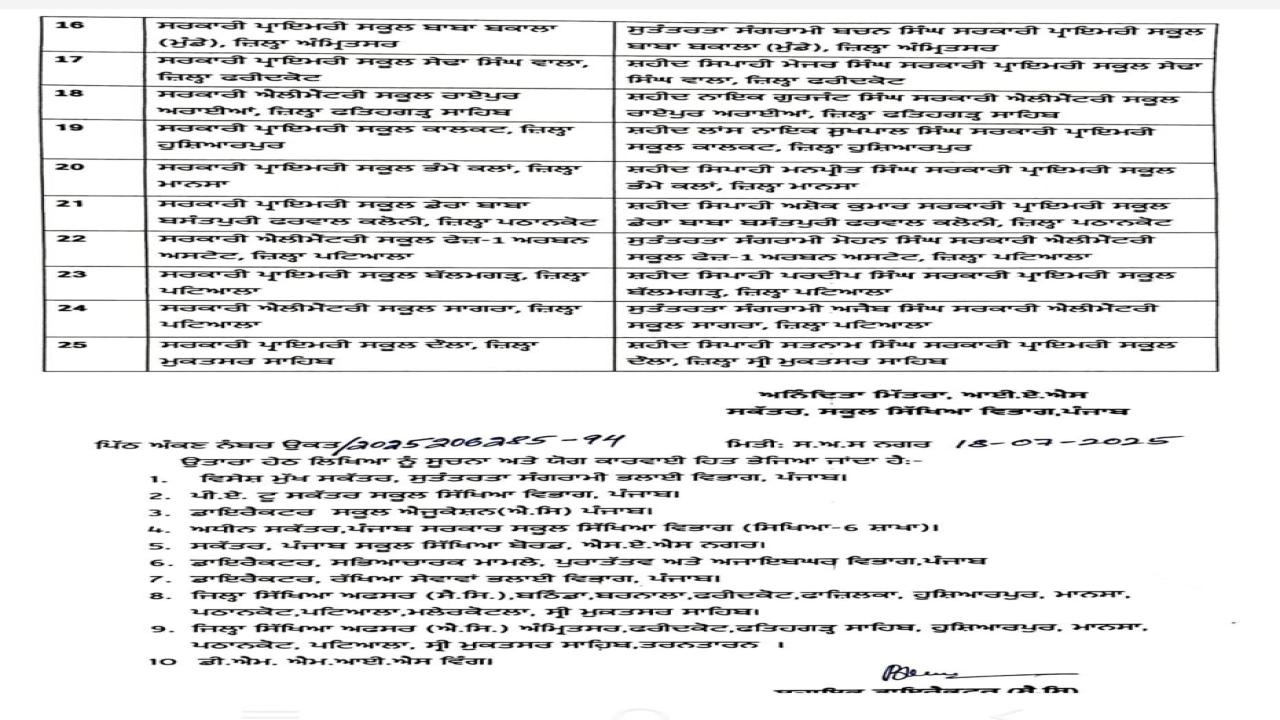 Punjab Education Minister Harjot Bains announced that several government schools will be renamed to honor eminent personalities, with their history, photos, and biographies displayed in schools.