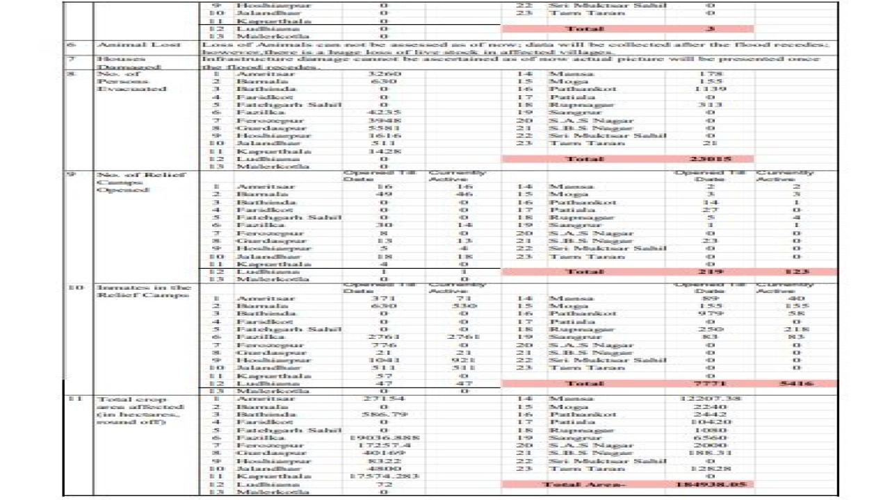 ਨਾਲ ਹੀ ਪਸ਼ੂਆਂ ਦੇ ਨੁਕਸਾਨ ਦੇ ਲਈ ਪੰਜਾਬ ਸਰਕਾਰ ਵੱਲੋਂ ਮੁਆਵਜ਼ਾ ਦਿੱਤਾ ਜਾਵੇਗਾ। 15 ਨਵੰਬਰ ਤੱਕ ਬਿਨਾਂ ਪਰਮਿਟ ਤੋਂ ਰੇਤ ਲੈਣ ਦੀ ਮਨਜੂਰੀ ਦਿੱਤੀ ਗਈ ਹੈ।