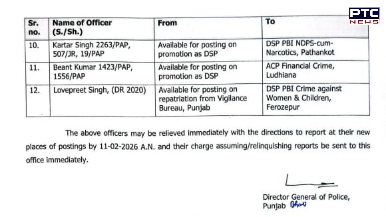 Punjab Police Transfers : ਪੰਜਾਬ ਪੁਲਿਸ ਵੱਲੋਂ 12 ਡੀਐਸਪੀਜ਼ ਅਧਿਕਾਰੀਆਂ ਦਾ ਤਬਾਦਲਾ, ਵੇਖੋ ਪੂਰੀ ਸੂਚੀ