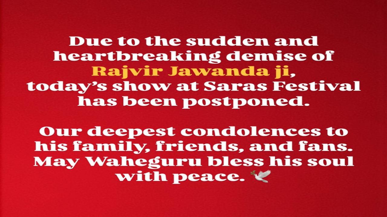 Deeply saddened by the untimely demise of popular Punjabi singer Rajveer Jawandha.