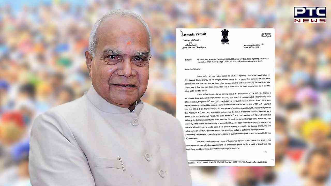 ਚੰਡੀਗੜ੍ਹ : ਚੰਡੀਗੜ੍ਹ ਦੇ ਐਸਐਸਪੀ ਅਹੁਦੇ ਦਾ ਵਿਵਾਦ ਭਖ਼ਦਾ ਜਾ ਰਿਹਾ ਹੈ ਅਤੇ ਇਸ ਮਸਲੇ ਨੂੰ ਲੈ ਕੇ ਪੰਜਾਬ ਸਰਕਾਰ ਤੇ ਗਵਨਰ ਮੁੜ ਆਹਮੋ-ਸਾਹਮਣੇ ਹੁੰਦੇ ਨਜ਼ਰ ਆ ਰਹੇ ਹਨ। ਗਵਰਨਰ ਨੇ ਚੰਡੀਗੜ੍ਹ ਤੋਂ SSP ਕੁਲਦੀਪ ਚਾਹਲ ਨੂੰ ਵਾਪਸ ਭੇਜੇ ਜਾਣ ਸਬੰਧੀ ਮੁੱਖ ਮੰਤਰੀ ਨੂੰ ਪੱਤਰ ਲਿਖਕੇ ਅਹਿਮ ਖ਼ੁਲਾਸੇ ਕੀਤੇ ਹਨ। ਪ੍ਰਸ਼ਾਸਕ ਬਨਵਾਰੀ ਲਾਲ ਪੁਰੋਹਿਤ ਵੱਲੋਂ ਜਾਰੀ ਪੱਤਰ ਵਿਚ ਦੱਸਿਆ ਗਿਆ ਕਿ ਐਸਐਸਪੀ ਚਾਹਲ ਨੂੰ ਅਹੁਦੇ ਤੋਂ ਲਾਂਭੇ ਕਰਨ ਸਬੰਧੀ ਪੰਜਾਬ ਸਰਕਾਰ ਨੂੰ ਪਹਿਲਾਂ ਹੀ ਸੂਚਿਤ ਕਰ ਦਿੱਤਾ ਗਿਆ ਸੀ। ਰਾਜਪਾਲ ਨੇ ਬੁੱਧਵਾਰ ਨੂੰ ਵਾਪਸ ਲਿਖਦਿਆਂ ਕਿਹਾ ਕਿ ਇਹ ਕਾਰਵਾਈ ''ਦੁਰਵਿਵਹਾਰ'' ਦੀਆਂ ਰਿਪੋਰਟਾਂ ਤੋਂ ਬਾਅਦ ਕੀਤੀ ਗਈ ਸੀ।