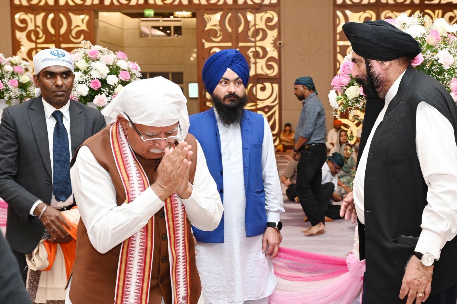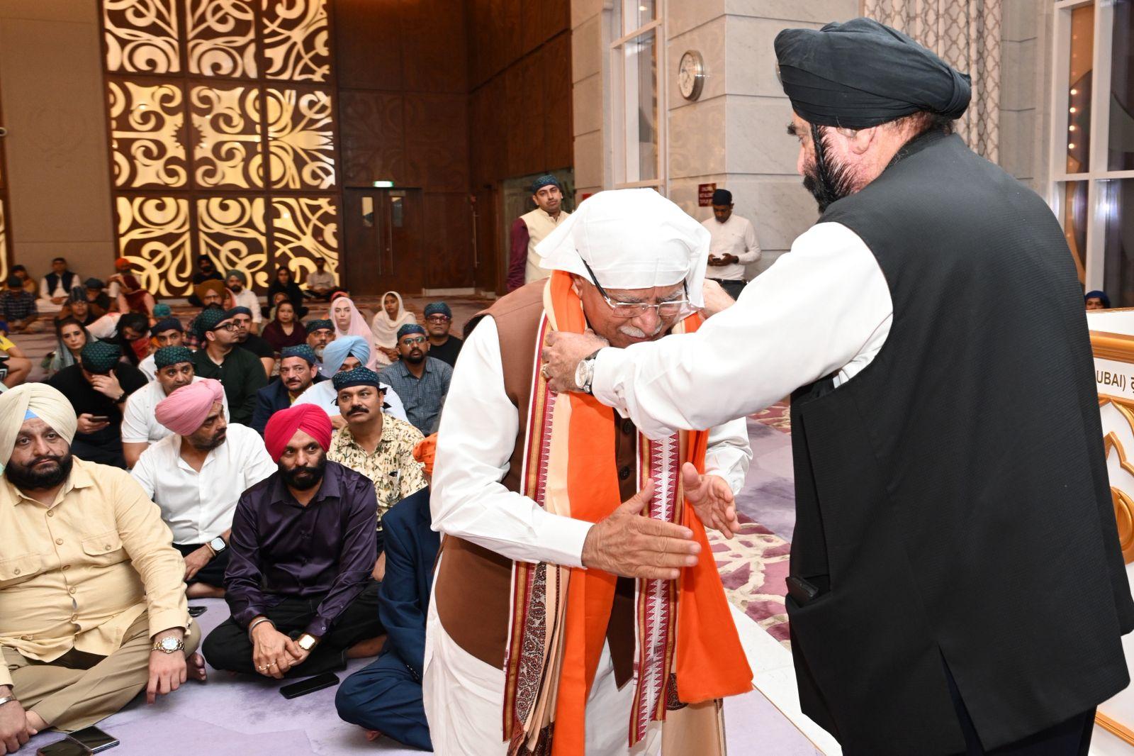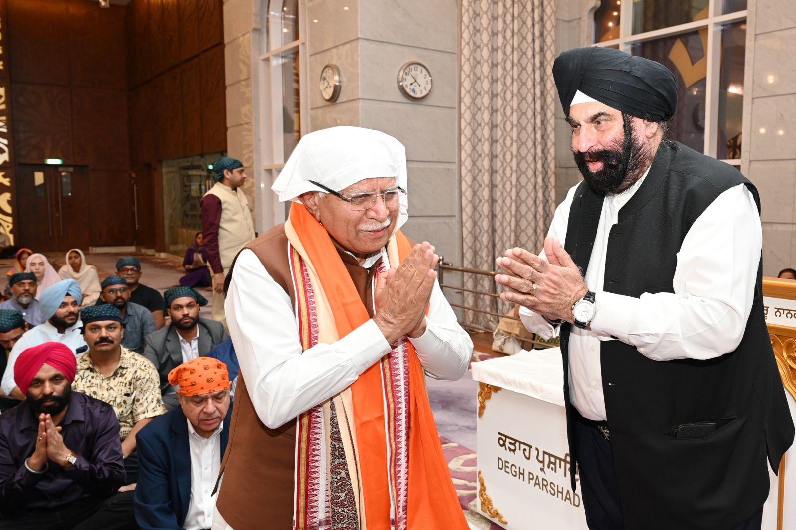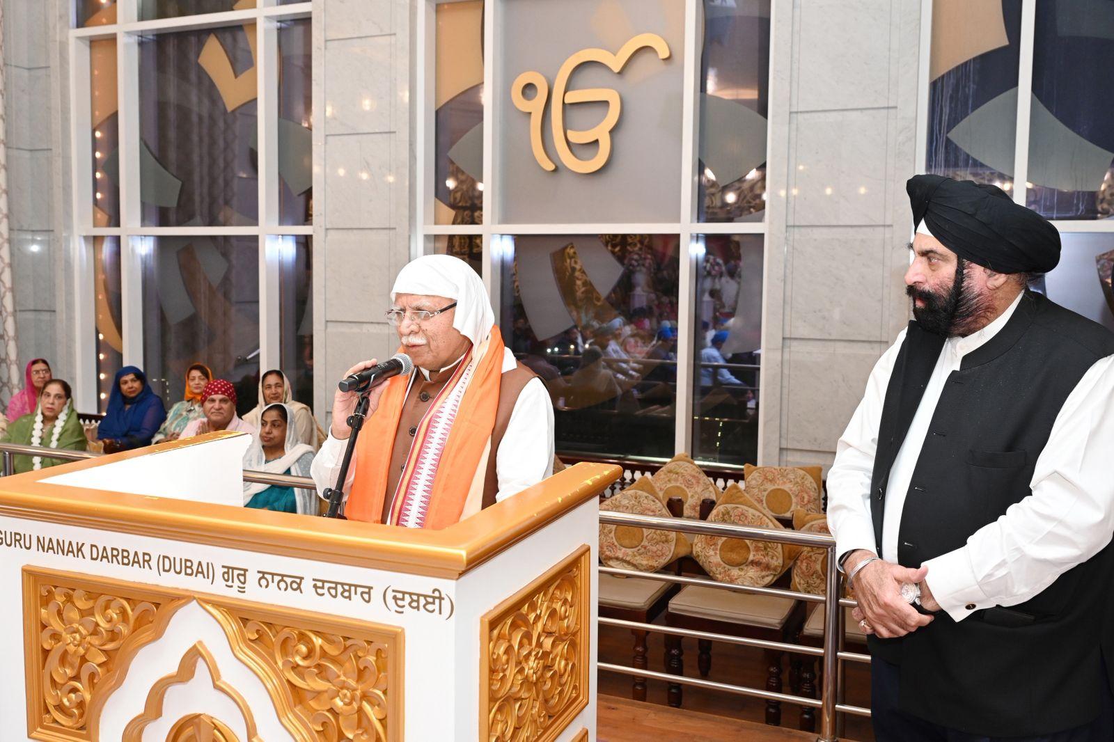 ਕੇਂਦਰੀ ਮੰਤਰੀ ਮਨੋਹਰ ਲਾਲ ਖੱਟੜ ਨੇ ਗੁਰਦੁਆਰਾ ਗੁਰੂ ਨਾਨਕ ਦਰਬਾਰ ਜੈਬਲ ਅਲੀ ਦੁਬਈ ਵਿਖੇ ਟੇਕਿਆ ਮੱਥਾ
