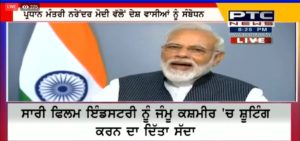 ਧਾਰਾ 370 ਜੰਮੂ-ਕਸ਼ਮੀਰ ਦੇ ਵਿਕਾਸ 'ਚ ਵੱਡੀ ਰੁਕਾਵਟ ਸੀ: PM ਮੋਦੀ,ਨਵੀਂ ਦਿੱਲੀ: ਜੰਮੂ - ਕਸ਼ਮੀਰ 'ਚ ਧਾਰਾ 370 ਹਟਾਉਣ ਤੋਂ ਬਾਅਦ ਦੇਸ਼ ਦੇ ਪ੍ਰਧਾਨ ਮੰਤਰੀ ਨਰੇਂਦਰ ਮੋਦੀ ਪਹਿਲੀ ਵਾਰ ਦੇਸ਼ ਨੂੰ ਸੰਬੋਧਿਤ ਕਰ ਰਹੇ ਹਨ। ਪਿਛਲੀ ਵਾਰ ਪ੍ਰਧਾਨ ਮੰਤਰੀ ਮੋਦੀ ਨੇ 27 ਮਾਰਚ ਨੂੰ ਦੇਸ਼ ਨੂੰ ਉਸ ਸਮੇਂ ਸੰਬੋਧਿਤ ਕੀਤਾ ਸੀ, ਜਦੋਂ ਭਾਰਤ ਨੇ ਐਂਟੀ - ਸੈਟਲਾਇਟ ਮਿਸਾਇਲ ਦਾ ਸਫਲ ਪ੍ਰੀਖਿਆ ਕਰਦੇ ਹੋਏ ਇੱਕ ਲਾਈਵ ਸੈਟੇਲਾਇਟ ਨੂੰ ਮਾਰ ਗਿਰਾਇਆ ਸੀ।