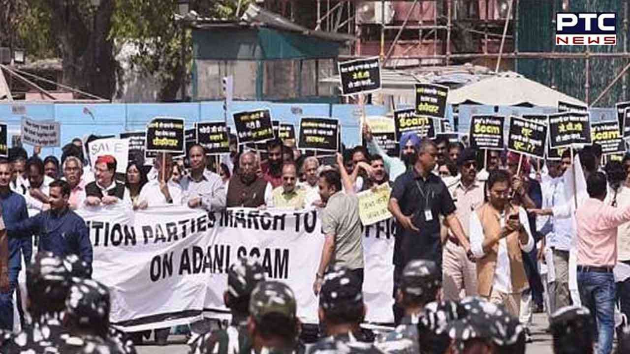 Adani issue: Opposition MPs seek JPC probe; form human chain outside Parliament