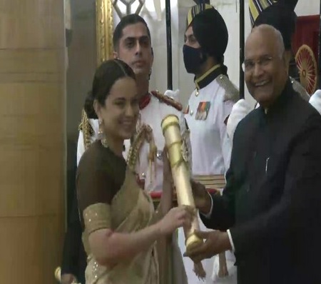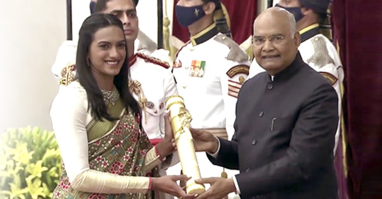 ਰਾਸ਼ਟਰਪਤੀ ਰਾਮ ਨਾਥ ਕੋਵਿੰਦ ਨੇ ਪੁਰਸਕਾਰਾਂ ਦੀ ਵੰਡ ਕੀਤੀ। ਕੱਲ੍ਹ, ਰਾਸ਼ਟਰਪਤੀ 2021 ਲਈ 119 ਲੋਕਾਂ ਨੂੰ ਪਦਮ ਪੁਰਸਕਾਰ ਪ੍ਰਦਾਨ ਕਰਨਗੇ। ਰਾਸ਼ਟਰਪਤੀ ਰਾਮ ਨਾਥ ਕੋਵਿੰਦ ਨੇ ਅਰੁਣ ਜੇਤਲੀ ਦੀ ਪਤਨੀ ਸੰਗੀਤਾ ਜੇਤਲੀ ਤੇ ਸੁਸ਼ਮਾ ਸਵਰਾਜ ਦੀ ਧੀ ਬੰਸੁਰੀ ਸਵਰਾਜ ਨੂੰ ਇਹ ਪੁਰਸਕਾਰ ਦਿੱਤਾ। ਇਸ ਮੌਕੇ ਓਲੰਪੀਅਨ ਬੈਡਮਿੰਟਨ ਖਿਡਾਰਨ ਪੀਵੀ ਸਿੰਧੂ ਨੂੰ ਪਦਮ ਭੂਸ਼ਣ ਨਾਲ ਸਨਮਾਨਤ ਕੀਤਾ ਗਿਆ।