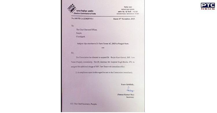 PTC Web Desk: The Election Commission of India (ECI) has ordered the immediate suspension of Tarn Taran Senior Superintendent of Police (SSP) Dr Ravjot Kaur Grewal following allegations of misuse of official machinery during the ongoing Tarn Taran byelection.