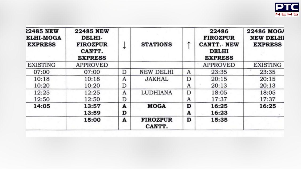 According to the revised schedule, the train will from Delhi via Jakhal and Ludhiana, reach Moga at 13:57 pm, depart from there at 13:59 pm and reach Ferozepur Cantt at 15:00 pm.