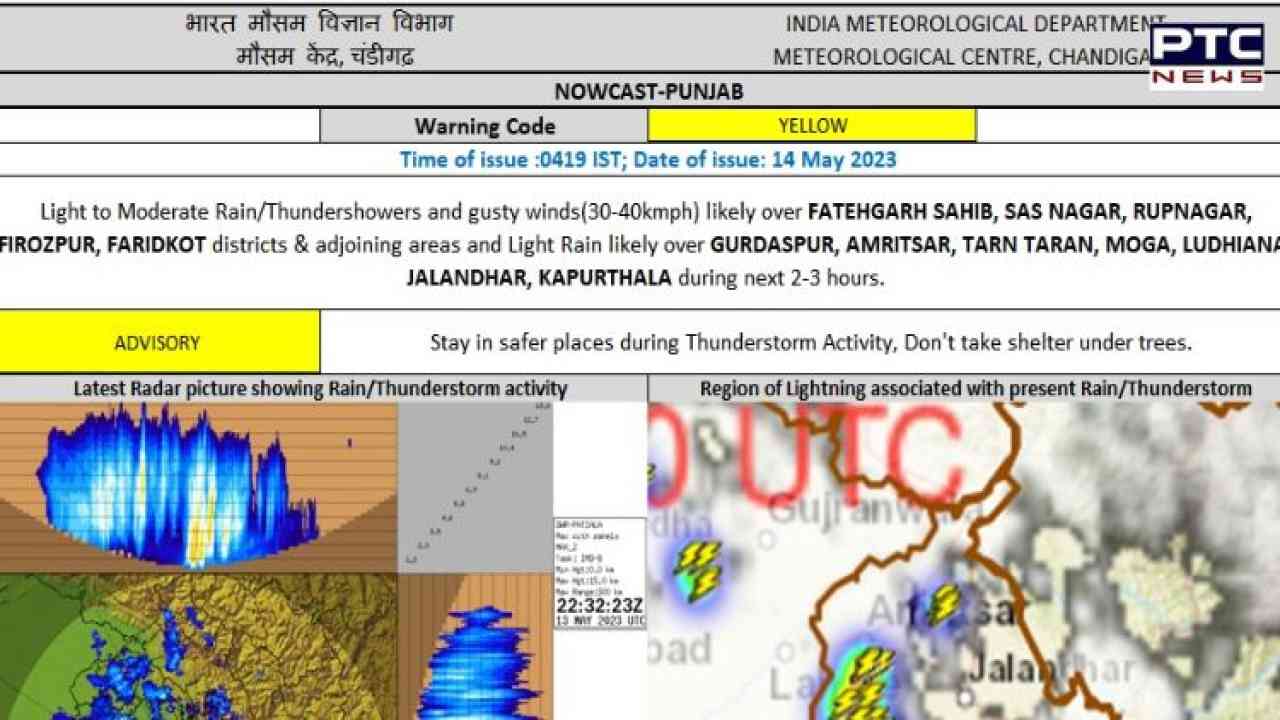 Punjab Weather Update: The Meteorological Department has issued yellow alert for rain, thundershowers and gusty winds likely over Fatehgarh Sahib, SAS Nagar, Rupnagar, Firozpur, Faridkot districts & adjoining areas and light rain likely over Gurdaspur, Amritsar, Tarn Taran, Moga, Ludhiana, Jalandhar, Kapurthala during next 2-3 hours.