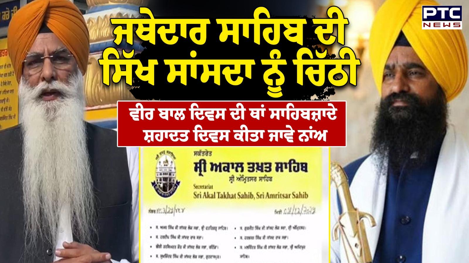 'ਵੀਰ ਬਾਲ' ਦਿਵਸ ਦੀ ਥਾਂ 'ਸਾਹਿਬਜ਼ਾਦੇ ਸ਼ਹਾਦਤ' ਦਿਵਸ ਕੀਤਾ ਜਾਵੇ ਨਾਂਅ, ਸ੍ਰੀ ਅਕਾਲ ਤਖ਼ਤ ਸਾਹਿਬ ਦੇ ਕਾਰਜਕਾਰੀ ਜਥੇਦਾਰ ਕੁਲਦੀਪ ਸਿੰਘ ਗੜਗੱਜ ਦੀ ਸਿੱਖ ਸਾਂਸਦਾਂ ਨੂੰ ਚਿੱਠੀ