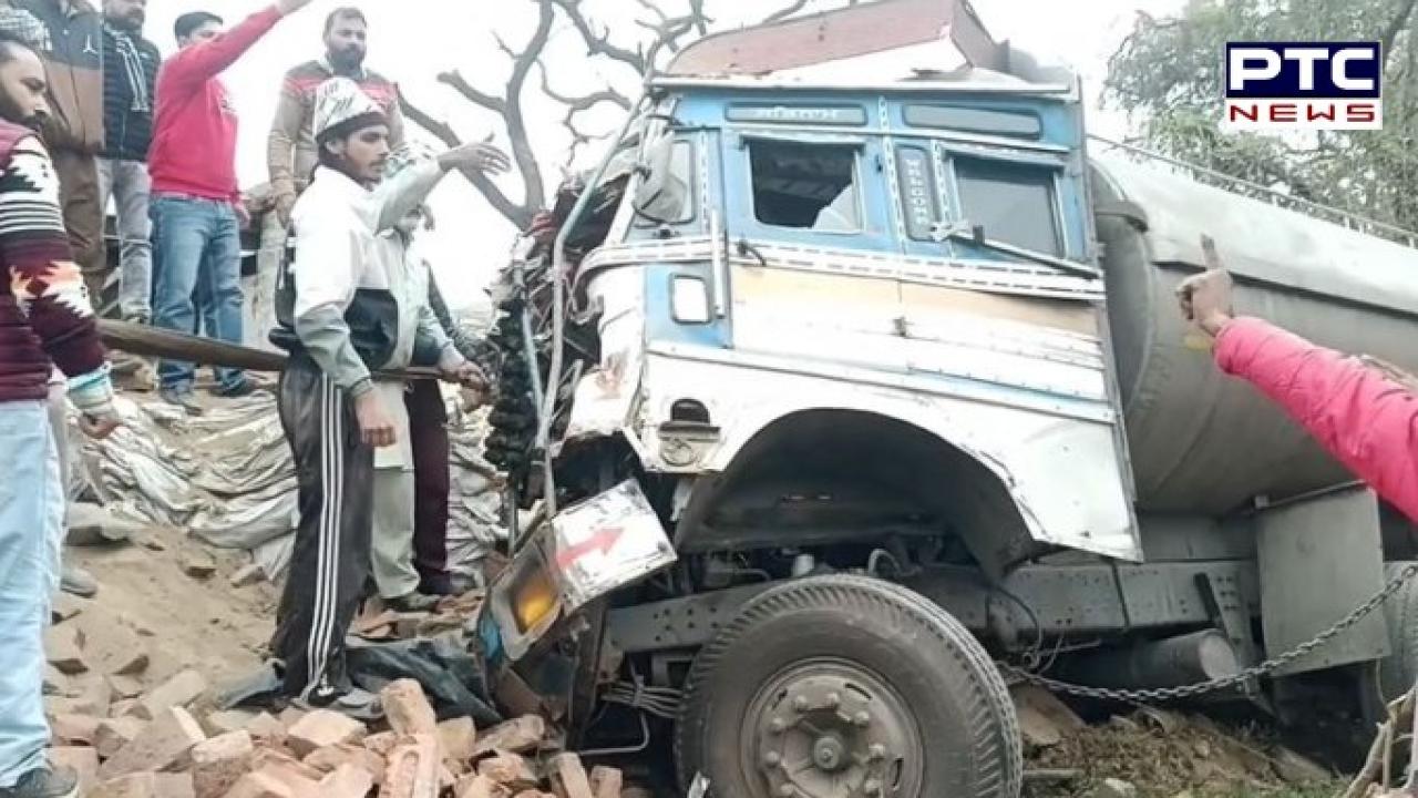 Road Accident : ਦੁੱਧ ਵਾਲੇ ਟੈਂਕਰ ਦਾ ਟਾਇਰ ਫੱਟਣ ਕਾਰਨ ਵਾਪਰਿਆ ਹਾਦਸਾ , ਟੈਂਕਰ 'ਚ ਹੀ ਫਸਿਆ ਡਰਾਈਵਰ