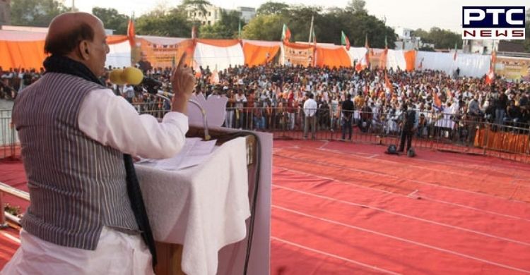 Gonda (Uttar Pradesh), February 19: Ahead of the third phase of Uttar Pradesh Assembly elections, Defence Minister and Bharatiya Janata Party (BJP) star campaigner Rajnath Singh on Saturday announced that if his party retains power in the state, it will provide free LPG gas cylinder on the occasion of Holi and Diwali every year.
