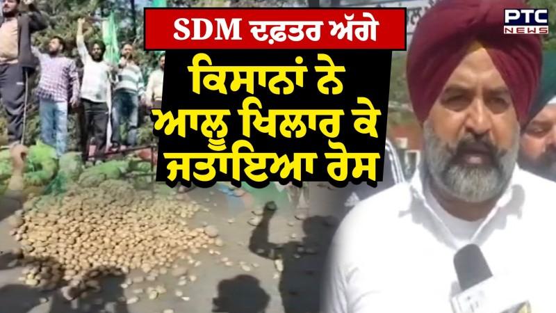 Samrala 'ਚ BKU ਕਾਦੀਆਂ ਦਾ ਅਨੌਖਾ ਪ੍ਰਦਰਸ਼ਨ, SDM ਦਫ਼ਤਰ ਅੱਗੇ ਆਲੂ ਖਿਲਾਰ ਕੇ ਜਤਾਇਆ ਰੋਸ