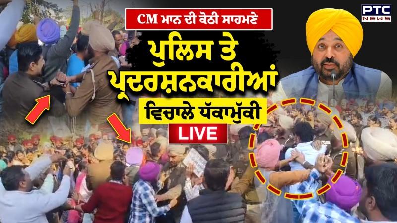 CM Mann ਦੀ ਕੋਠੀ ਸਾਹਮਣੇ ਪੁਲਿਸ ਤੇ ਪ੍ਰਦਰਸ਼ਨਕਾਰੀਆਂ ਵਿਚਾਲੇ ਧੱਕਾਮੁੱਕੀ, ਪੁਲਿਸ ਨੇ ਬਾਹਾਂ ਤੋਂ ਫੜ -ਫੜ ਖਿੱਚੇ