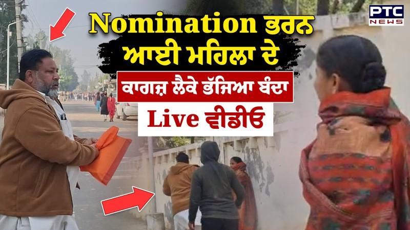 Nomination ਭਰਨ ਆਈ ਮਹਿਲਾ ਦੇ ਹੱਥੋਂ ਕਾਗਜ਼ ਲੈਕੇ ਭੱਜਿਆ ਬੰਦਾ