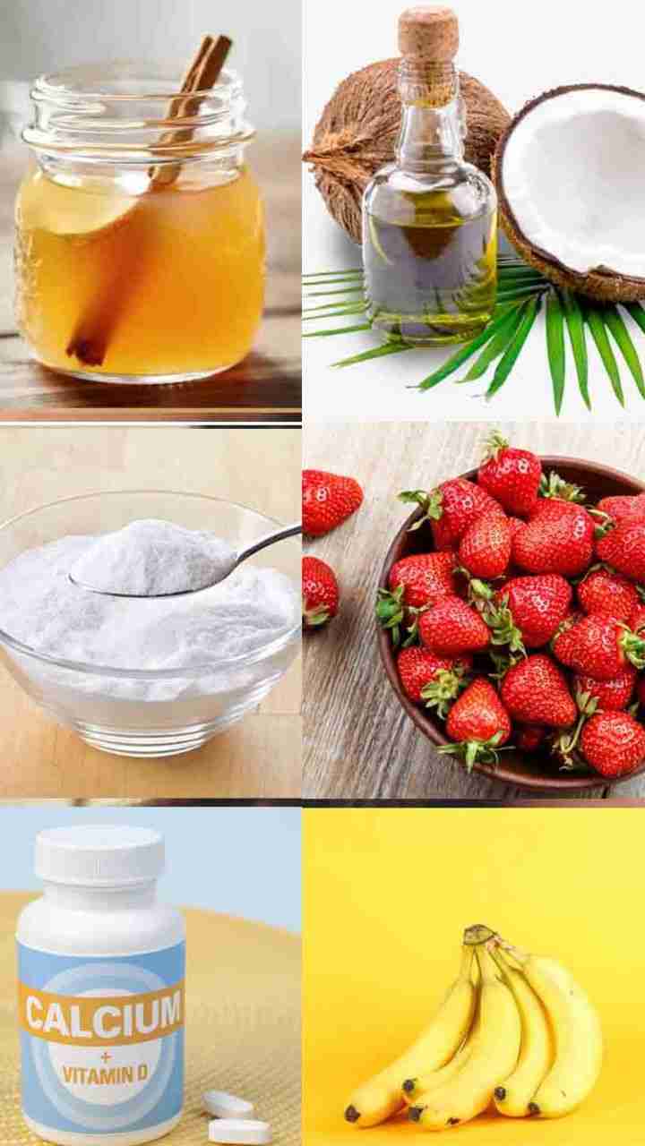 Apple cider vinegar can be used as a mouthwash to remove stains and kill bacteria. Dilute it with water and use it sparingly.