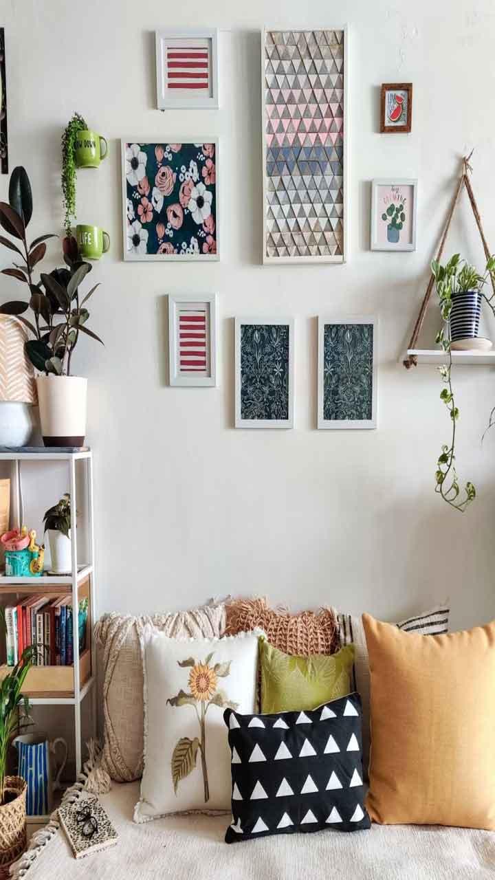 Create a gallery wall with a mix of framed photos, prints, and other art pieces. Use different frame styles and sizes for an eclectic look.