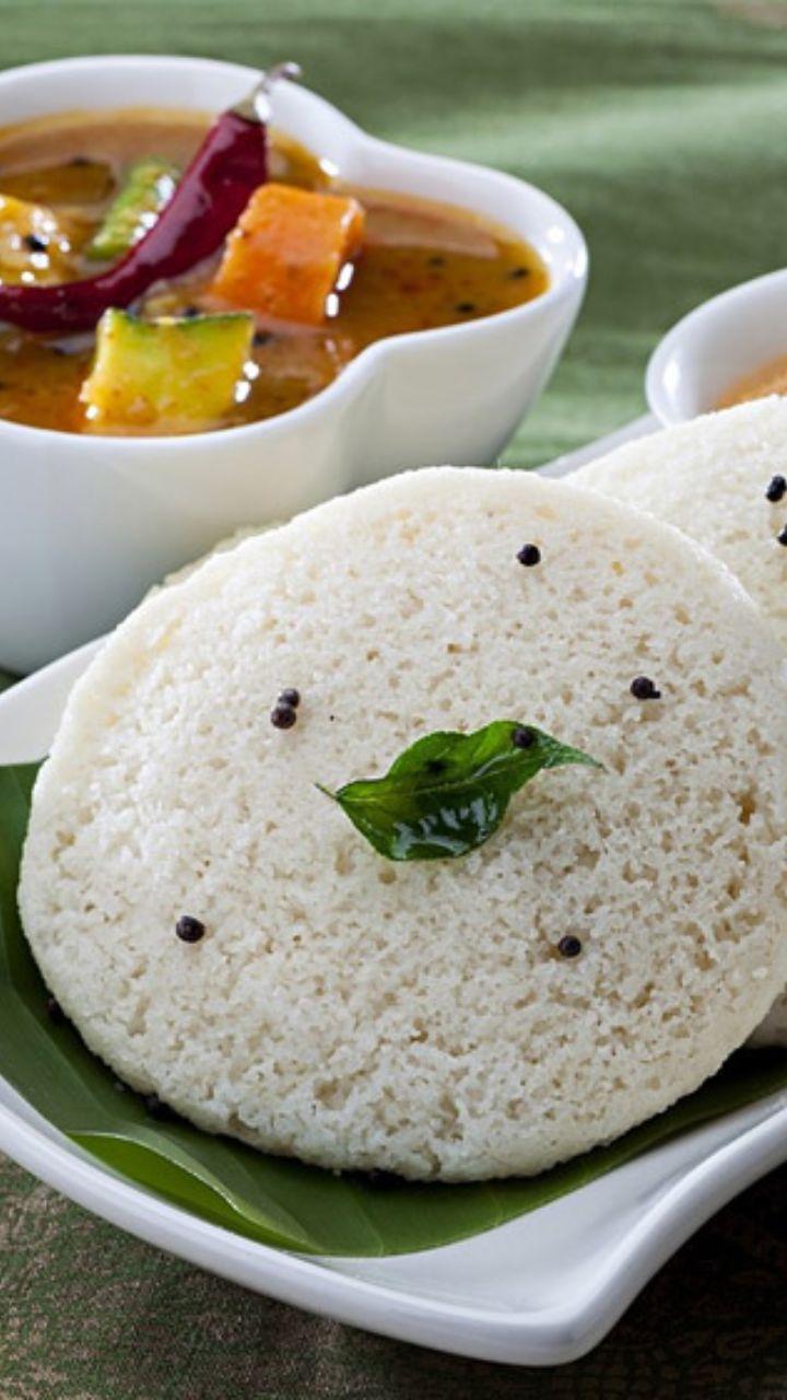 Soft, fluffy steamed cakes made from fermented rice and urad dal batter. They are typically served with sambar and coconut chutney.