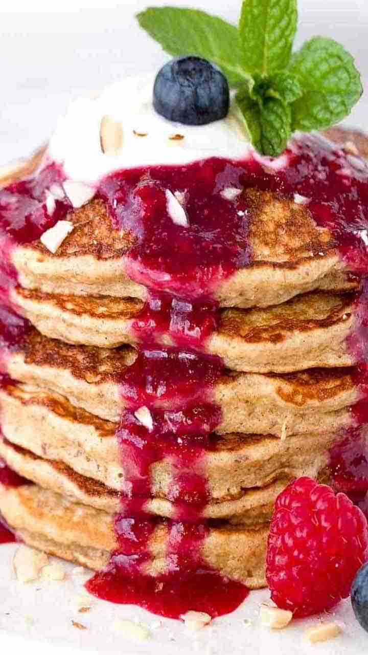Pancakes with Fruit Topping: Make your favourite pancakes (whole wheat or buttermilk). Top them with sliced peaches, blueberries, and a dollop of whipped cream